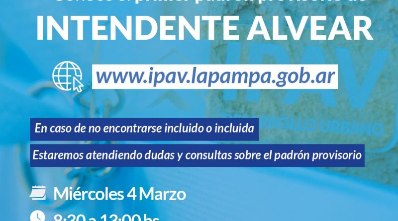 Read MoreEl Instituto Provincial Autárquico de Vivienda (IPAV) anunció que el próximo miércoles 4 de marzo se llevará a cabo una