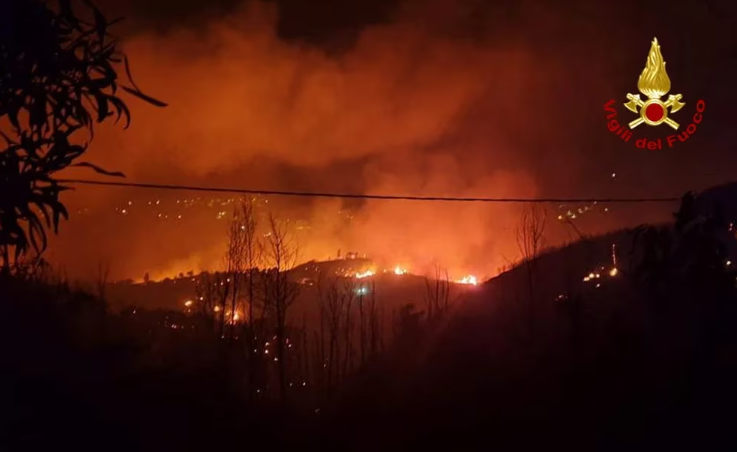 Las llamas no han cesado durante toda la noche en todas las provincias de Sicilia: según las autoridades regionales, hay 55 incendios que siguen ardiendo, alimentados por el viento siroco y las altísimas temperaturas. El fuerte viento además está imposibilitando las operaciones de aviones bombarderos de agua Canadair y helicópteros