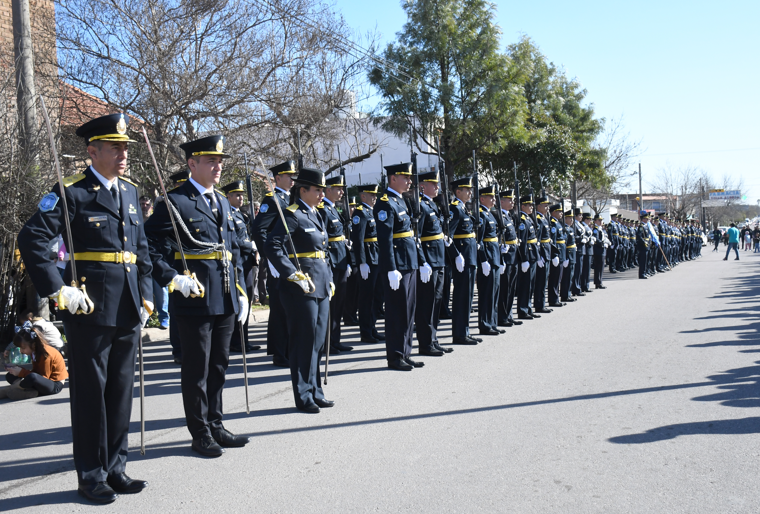 El desfile, encabezado por la Agrupación 30 de Agosto, representó un momento de celebración y orgullo, en el cual participaron diversos segmentos de la Policía de La Pampa, rindiendo tributo a la historia, sacrificio y compromiso de la institución y su personal.
