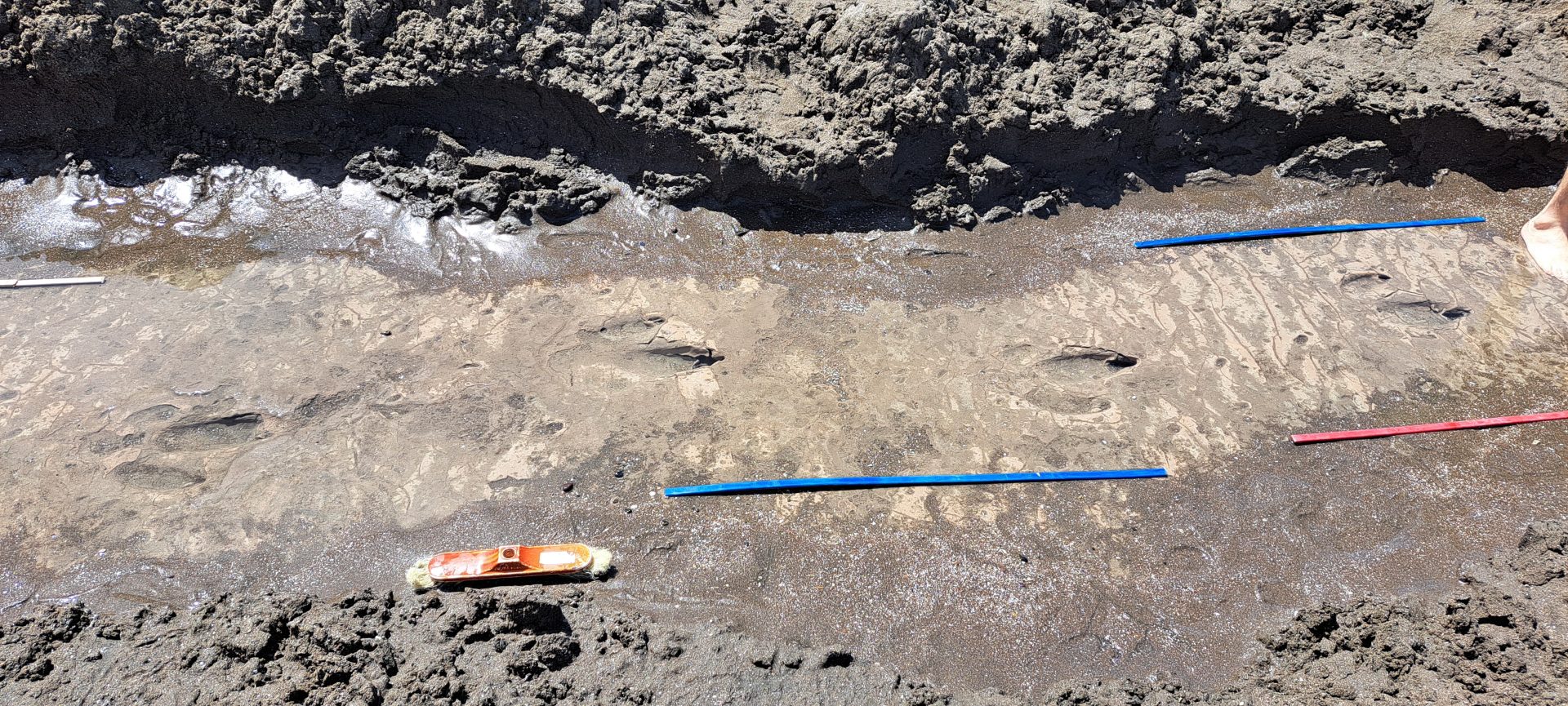 Investigadores de la Universidad Nacional de La Pampa analizan huellas de un ave fósil gigante