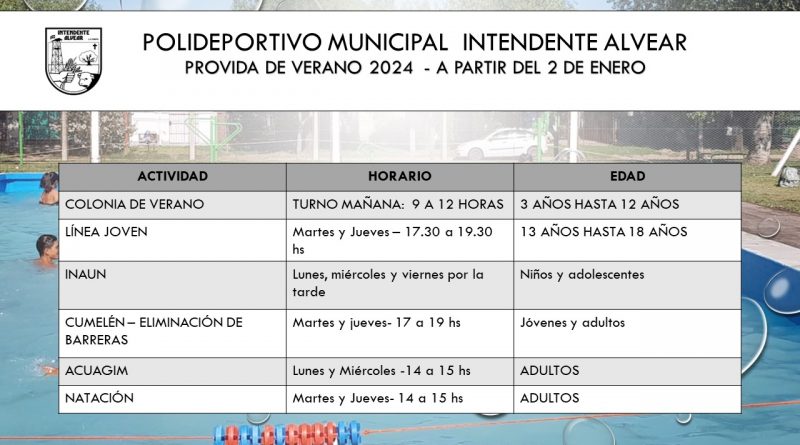 El Provida de Verano 2024 ya está en marcha en la localidad, ya que este lunes 18 comenzaron las inscripciones y hay gran variedad de actividades recreativas para elegir. La colonia de verano comenzará el 2 de enero, y se pueden inscribir niños desde los 3 años hasta 12 años de edad. Las actividades serán por la mañana. Los adolescentes también tienen su espacio a través de Línea Joven, para chicos de 13 a 18 años que estén cursando el nivel secundario. Las actividades se realizarán a partir del 2 de enero, los días martes y jueves por la tarde. Por otra parte, habrá actividades abiertas para adultos, aquagym y natación de 14 a 15 hs. Es importante destacar que todos los subprogramas, INAUN, Cumelén y Eliminación de Barreras continuarán sus actividades, pero adaptadas en el marco de la temporada de verano, y también se realizarán en el Polideportivo Municipal como el resto de las actividades. Debido a la gran demanda de uso que tienen las instalaciones del natatorio, esta temporada se dispuso que no esté abierto al público los días sábados y domingos; esta medida es para preservar dichas instalaciones teniendo en cuenta la gran cantidad de personas que concurren al Provida durante los días de semana.