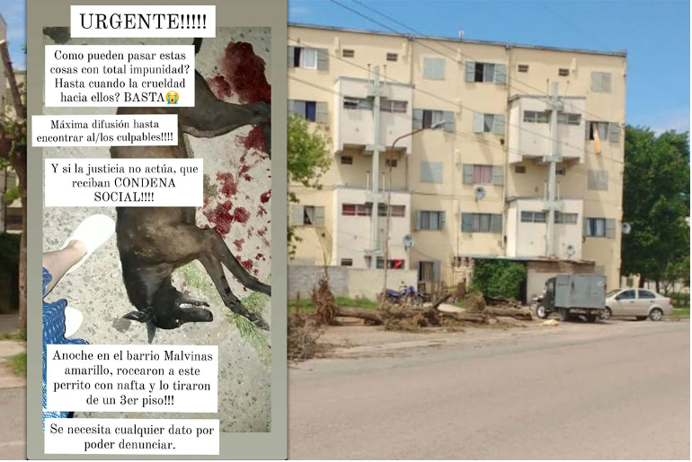 En un hecho que ha generado consternación y repudio en la comunidad, vecinos del barrio Malvinas han denunciado un acto de crueldad animal inaudito. Según relatos de los habitantes, un perro fue rociado con nafta y arrojado desde el tercer piso de un edificio, provocándole la muerte.