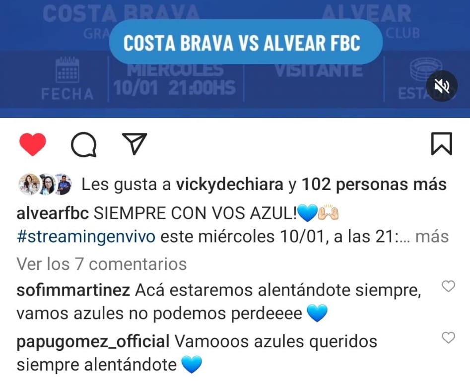 Por otro lado, Sofía Martínez, hermana del hincha acérrimo y jugador Azul Tomás Martínez, quien le transmitió su pasión por el equipo, también estará siguiendo el partido de cerca esta noche. En sus redes sociales, ambos expresaron su entusiasmo y respaldo al Alvear FBC, añadiendo una carga emotiva extra al enfrentamiento.