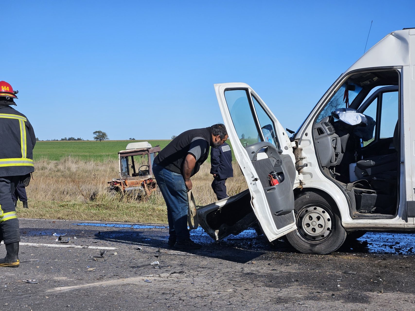 El siniestro ocurrió en ruta provincial 7 entre las localidades de Metileo y Villa Mirasol. Los vehículos involucrados son un Trafic Ducato y un tractor. Los dos vehículos circulaban en la misma dirección. Trabajó personal policial y también bomberos voluntarios.