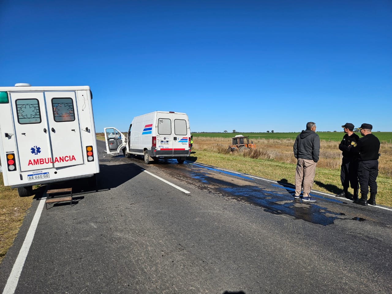 El choque ocurrió a unos 2 km de la localidad de Metileo. La camioneta Ducato, que realiza el traslado de medicamentos para una droguería de Santa Rosa, choco desde atrás al tractor.