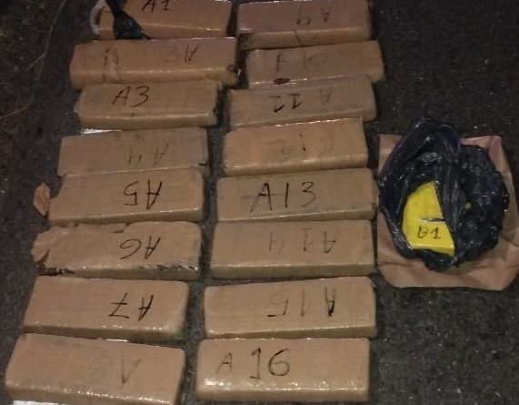 Finalmente, los involucrados, un hombre y una mujer de 34 y 32 años respectivamente, ambos domiciliados en Eduardo Castex, fueron detenidos. En el interior del vehículo se halló un ladrillo de marihuana mientras que, como resultado de un rastrillaje en la zona, se hallaron 16 ladrillos de marihuana, con un peso total de 14,901 kgs. y un ladrillo de cocaína de 1, 040 kgs.