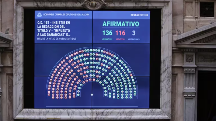 El paquete fiscal establece una reversión del impuesto a las Ganancias que había establecido el entonces ministro de Economía Sergio Massa durante la última parte del año pasado, cuando era el candidato presidencial de Unión por la Patria. A partir de ahora, el mínimo no imponible será de $1.800.000 brutos para los solteros y de $2.200.000 para los casados con hijos. Así, con alícuotas que van del 5% al 35%, volverán a pagar este tributo alrededor de 800.000 trabajadores que habían sido eximidos el año pasado. Se podrán deducir del impuesto gastos por alquiler y servicios médicos. La actualización del mínimo no imponible se hará de forma trimestral durante este año, en septiembre, y luego de forma semestral a partir del Índice de Precios al Consumidor (IPC).