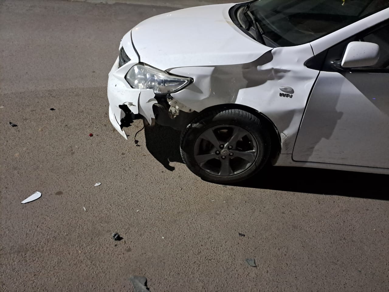 El incidente involucró a un automóvil Toyota Corolla, conducido por una mujer, que circulaba de Sur a Norte por la Avenida Sarmiento. El vehículo fue impactado en su lateral izquierdo por una motocicleta de 110 cc, cuyo conductor, un hombre, se desplazaba por la calle Laprida en dirección Oeste a Este.