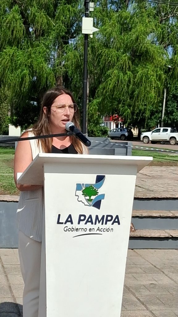 La ceremonia tuvo lugar frente al mástil central, encabezada por la viceintendente Agustina García, acompañada por el intendente Eduardo Pepa, las autoridades provinciales Juan Pavoni Director de la Zona 1 de la Secretaria de Asuntos Municipales, Hernán Pérez Araujo Vicepresidente 1º de la legislatura de La Pampa, los diputados Julián Aguilar, Maria Laura Trapaglia, Noelia Viara y Matias Traba, intendentes de localidades vecinas Juan Cruz Vega y Hernán Gaggioli, autoridades municipales, representantes de instituciones locales, y vecinos de la localidad.