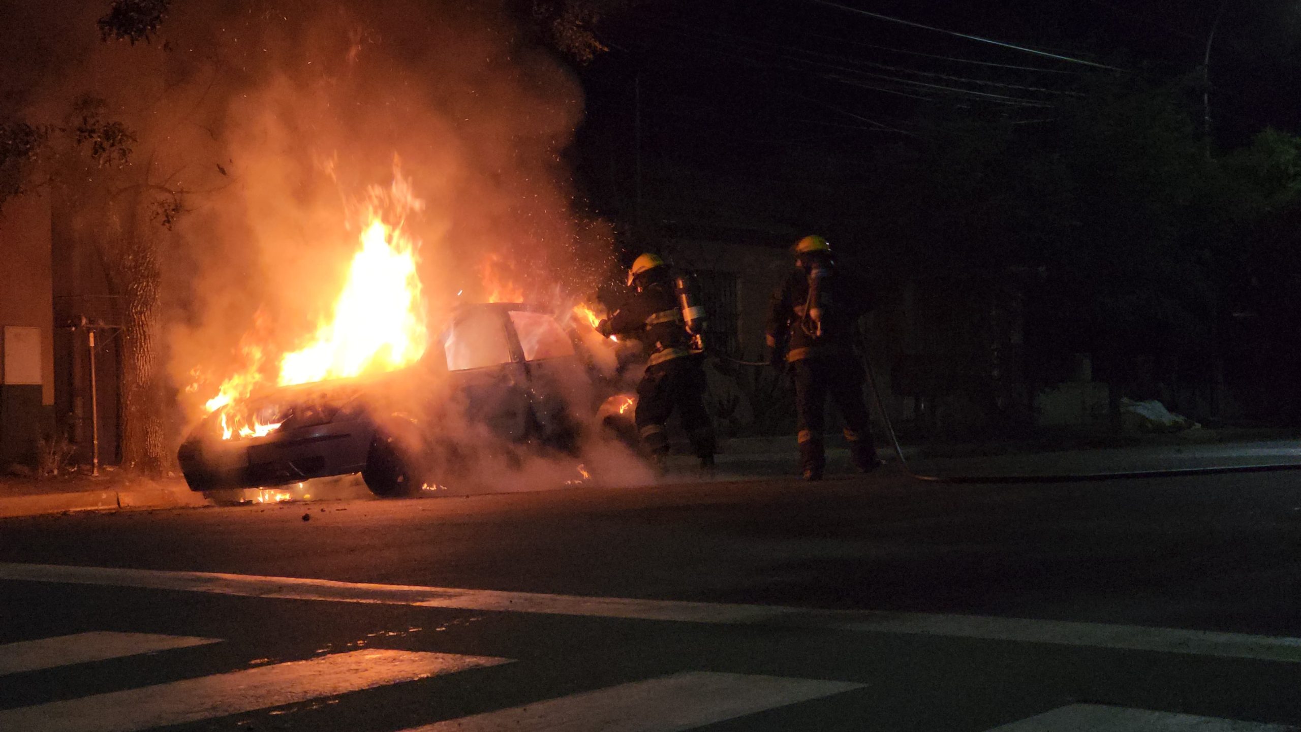 El vehículo, un Ford Focus estaba totalmente envuelto en llamas cuando llegó la dotación de Bomberos Voluntarios.