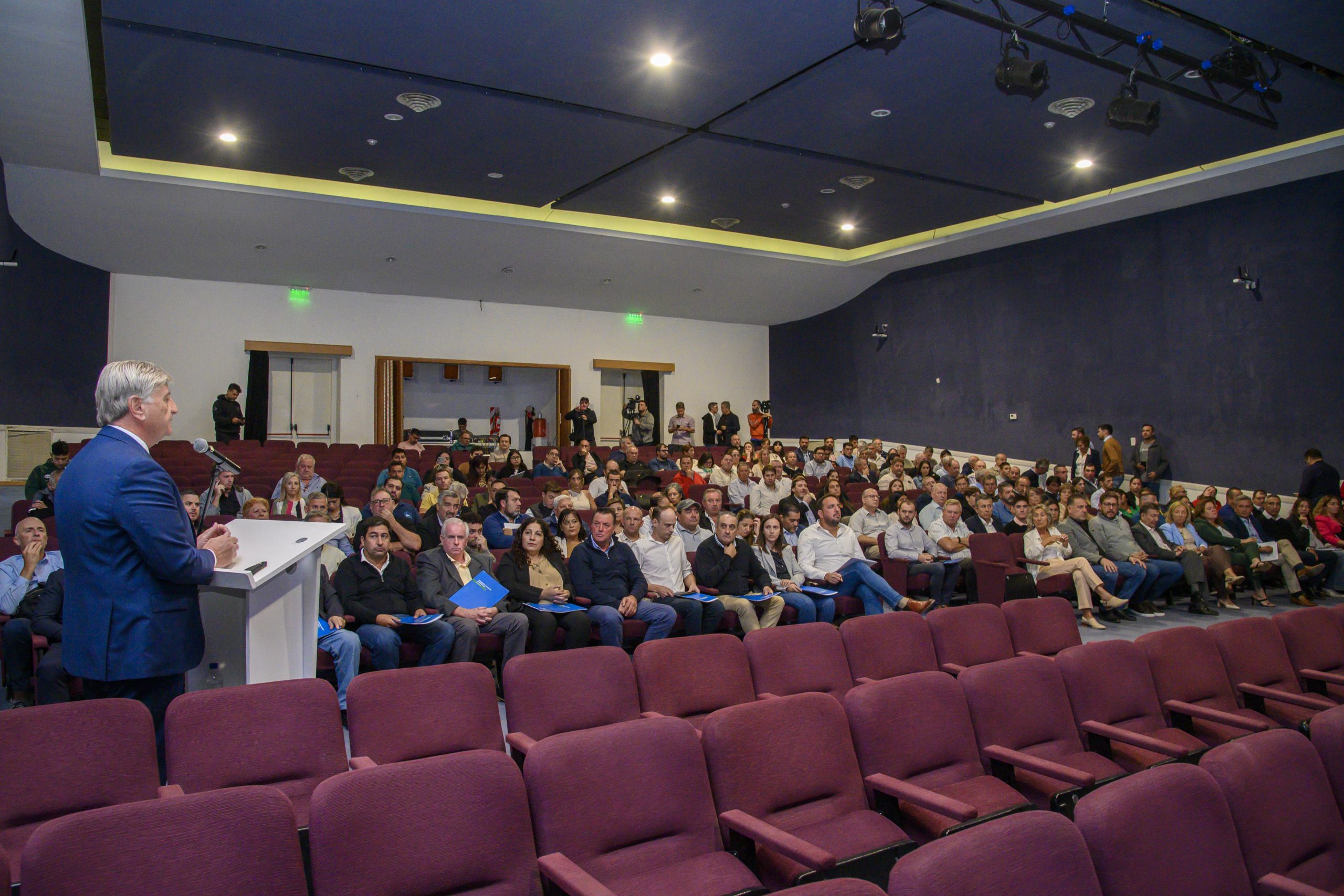 El acto se desarrolló en el MEDASUR y contó con la presencia de 79 intendentes e intendentas y presidentes de Comisiones de Fomento de La Pampa. Además, estuvieron la vicegobernadora, Alicia Mayoral; la presidenta del Tribunal de Cuentas, María Alejandra Mac Allister; legisladores provinciales y demás autoridades del Poder Ejecutivo.