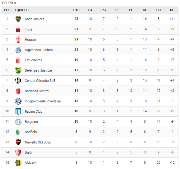 TABLA DE POSICIONES DEL TORNEO APERTURA