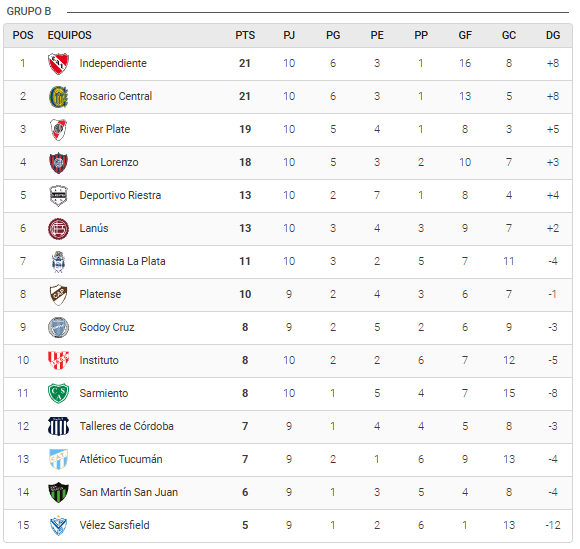 El Millonario quedó tercero con 19 puntos y está a dos de los líderes, Rosario Central e Independiente. El Canalla venció 2-1 a Gimnasia de La Plata y escaló a lo más alto, mientras que el Rojo rescató un punto en el choque frente a la Academia.