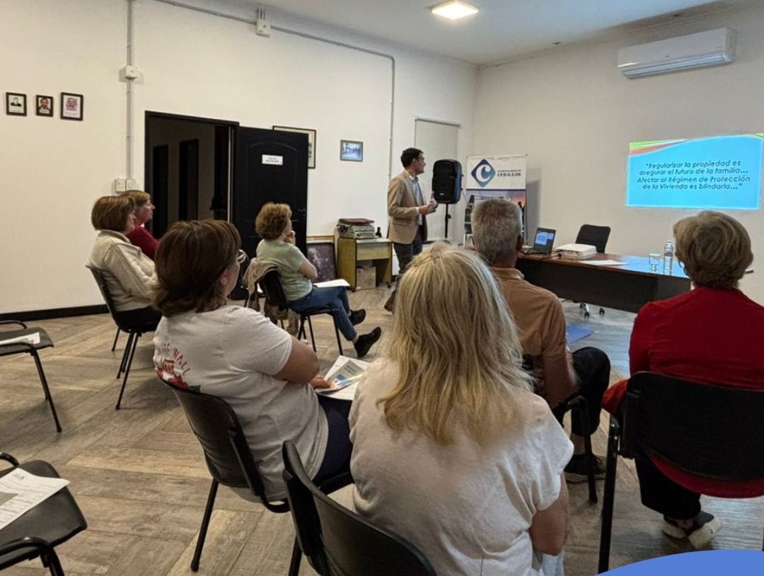 La semana pasada se llevó a cabo una charla informativa sobre el Régimen de Protección de la Vivienda (Bien de Familia) y Regularización Dominial, que contó con la participación del Dr. Juan Mecca, director del Registro de la Propiedad Inmueble de La Pampa, y del Escribano Diego Mayordomo, titular del Registro Notarial N.º 4 del Departamento Chapaleufú.