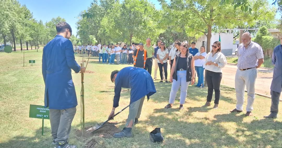 Durante la jornada, cada curso plantó un lapacho, elegido como símbolo de crecimiento, fortaleza y futuro. El gesto busca representar las huellas que cada promoción deja en su paso por la escuela y su vínculo con la comunidad que los vio crecer.