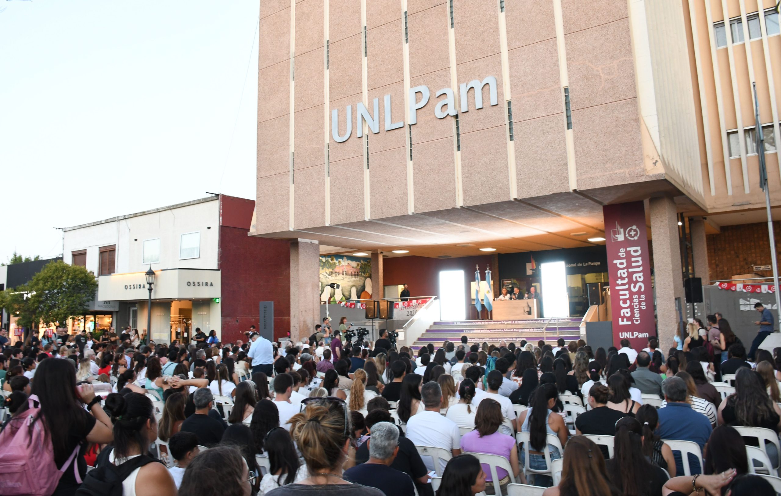 En un acto realizado esta noche en las escalinatas de la sede de la Universidad Nacional de La Pampa (UNLPam), se le dio la bienvenida a 740 alumnos y alumnas que empezaron la carrera en la Facultad de Ciencias Médicas. En los discursos se agradeció el apoyo del Gobernador Ziliotto “desde el minuto uno” y se dejó en claro la importancia de formar médicos y médicas “con sentido de pertenencia y conocimiento del territorio y de su comunidad”.