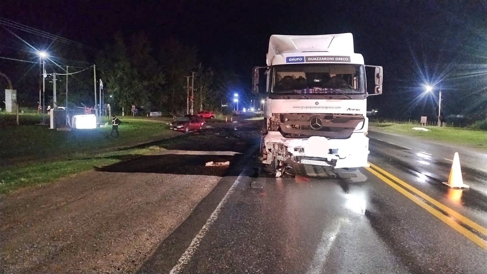 De acuerdo a las primeras informaciones policiales, el choque involucró a un camión Mercedes Benz Axor 2533, que se desplazaba en sentido Este-Oeste, y a un automóvil Peugeot 206 que lo hacía en sentido contrario.