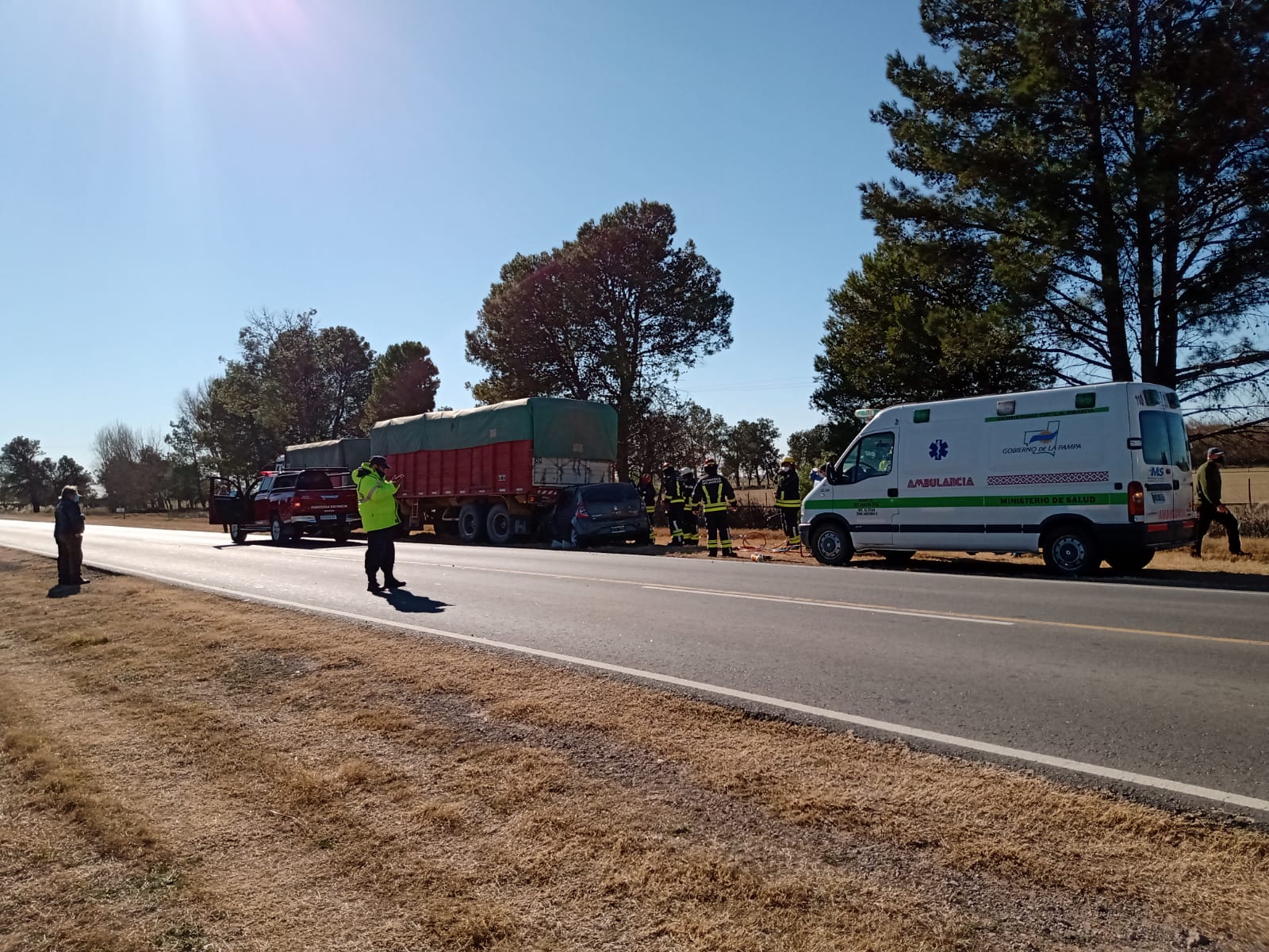 El impresionante accidente fue en el km 20 de la Ruta Provincial N° 1 entre un automóvil que por circunstancias que se tratan de establecer colisionó detrás de un camión de gran porte.