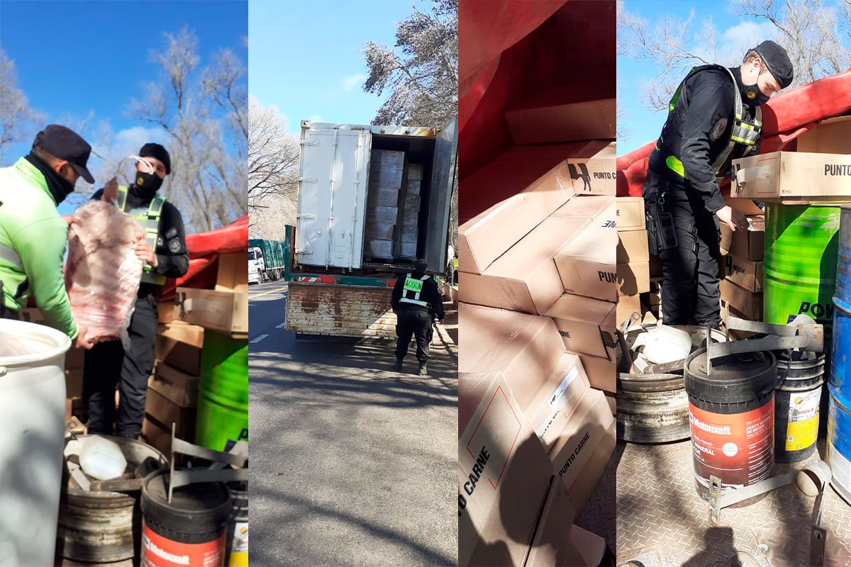 La carga provenía de Mataderos (Buenos Aires) con destino a la ciudad de Allen, General Roca, (Río Negro) y el transporte no contaba con habilitación para transportar los productos cárnicos ni la documentación oficial.