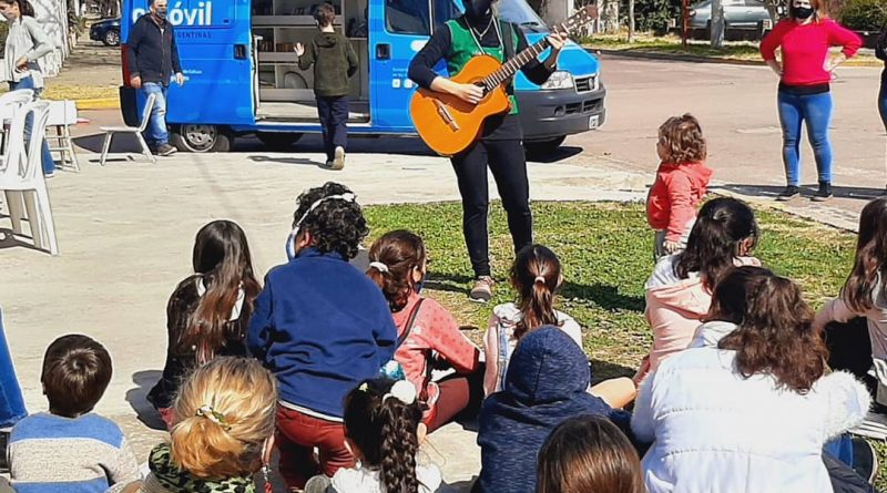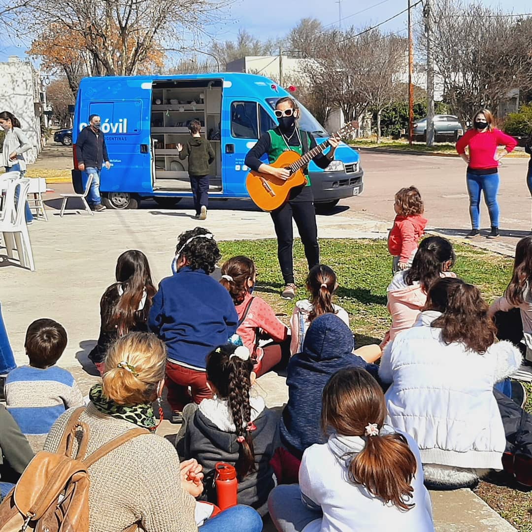 El Bibliomóvil llegando desde Conabip se aunó a la ocasión festiva brindando su abanico de opciones librescas para el goce lector de quienes se sumaron al convite de viernes.