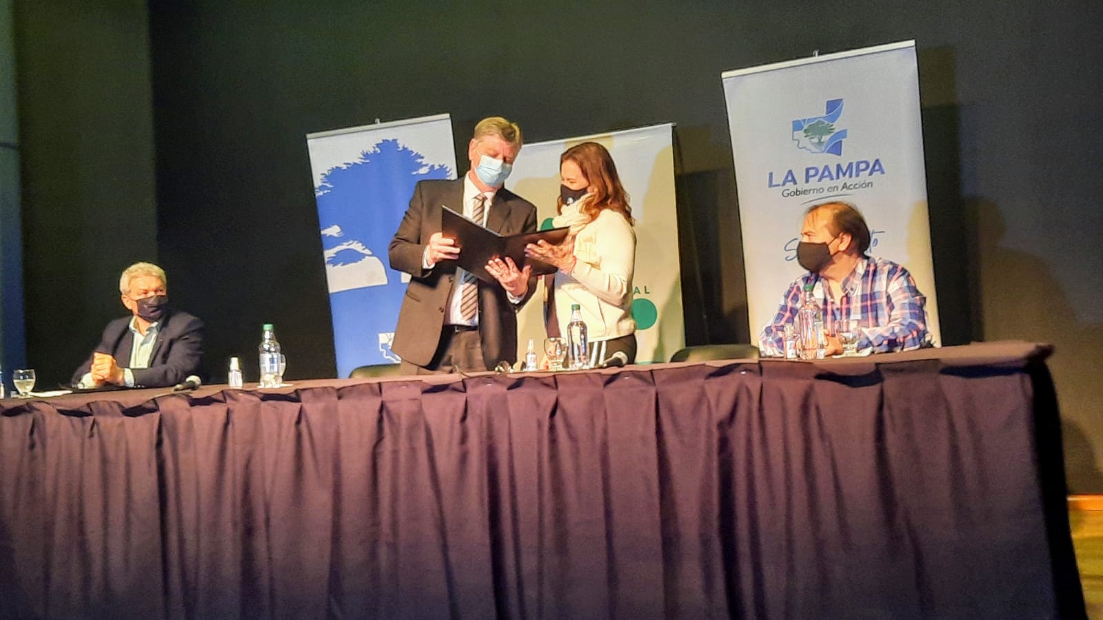 El gobernador Sergio Ziliotto le entregó a la intendenta de General Pico, Fernanda Alonso, la documentación que aprueba el llamado a licitación de tres obras de saneamiento por 800 millones de pesos que aporta el Gobierno nacional.