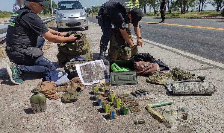 Al referirse al secuestro explicó que “en este contexto se identificó un vehículo con dos ocupantes, un hombre y una mujer, ambos mayores de edad, al revisar el rodado encontraron una caja metálica de origen militar con municiones calibre 7,62 para fusiles, tanto comunes como trazantes, y también se individualizaron proyectiles para morteros de bajo calibre, ahora tenemos que ver si están en condiciones de uso o no, como así también otras sustancias explosivas, como así también mochilas e indumentaria militar diversa”.