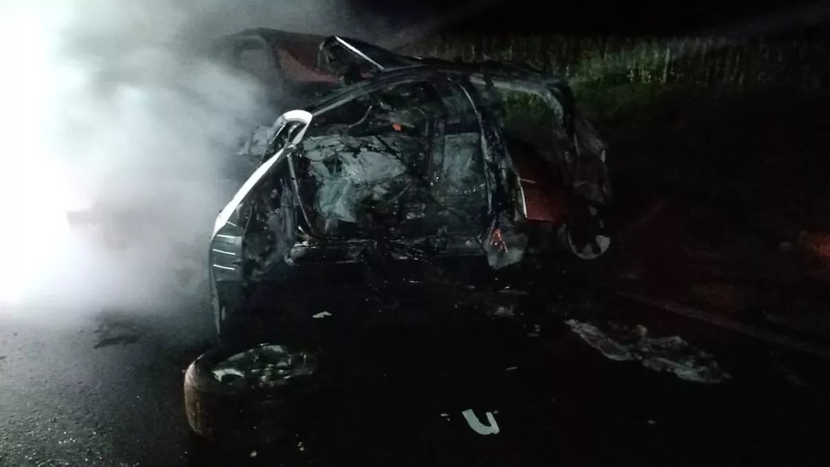 Como consecuencia del fuerte impacto, ambos vehículos se prendieron fuego prácticamente en el acto.