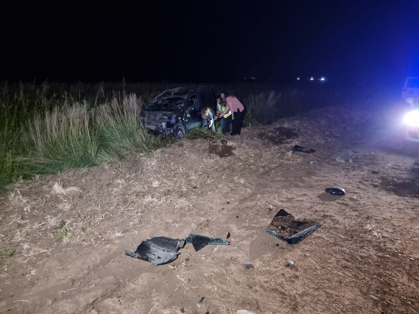 Por motivos que se tratan de establecer habría mordido la banquina, perdió el control y terminó volcando. El vehículo, una Renault Kangoo quedó parado sobre sus ruedas, pero con roturas importantes.