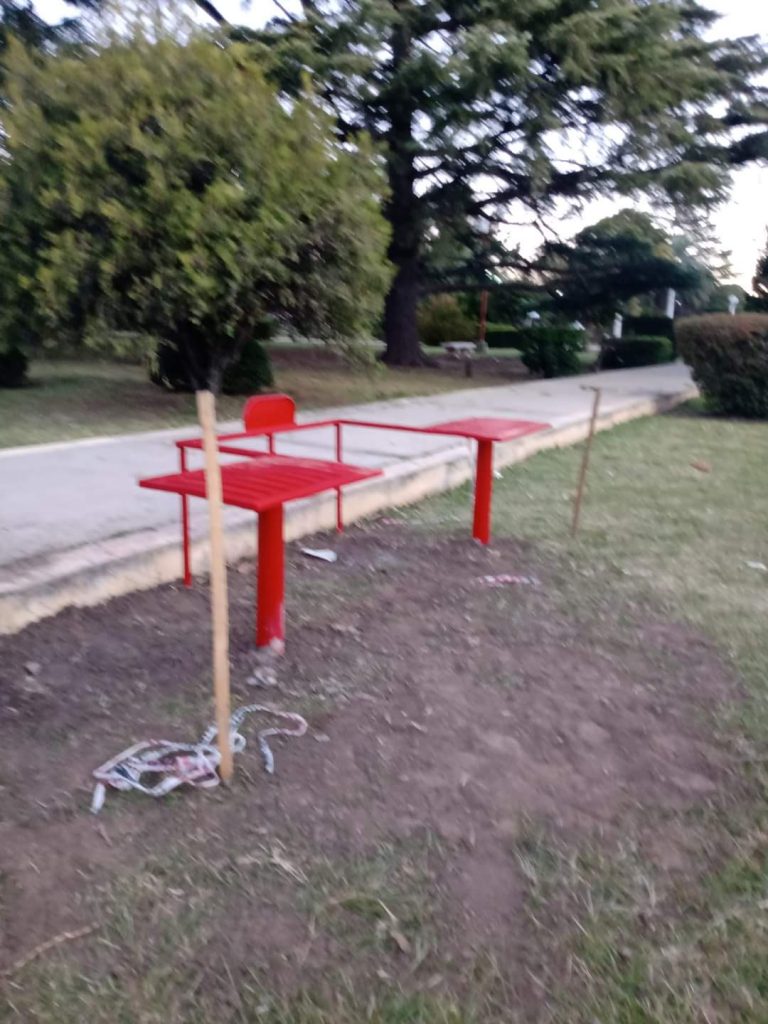 Larroudé: Instalaron mas juegos infantiles en el Parque Termal y se colocó un banco para personas con discapacidad en la plaza central