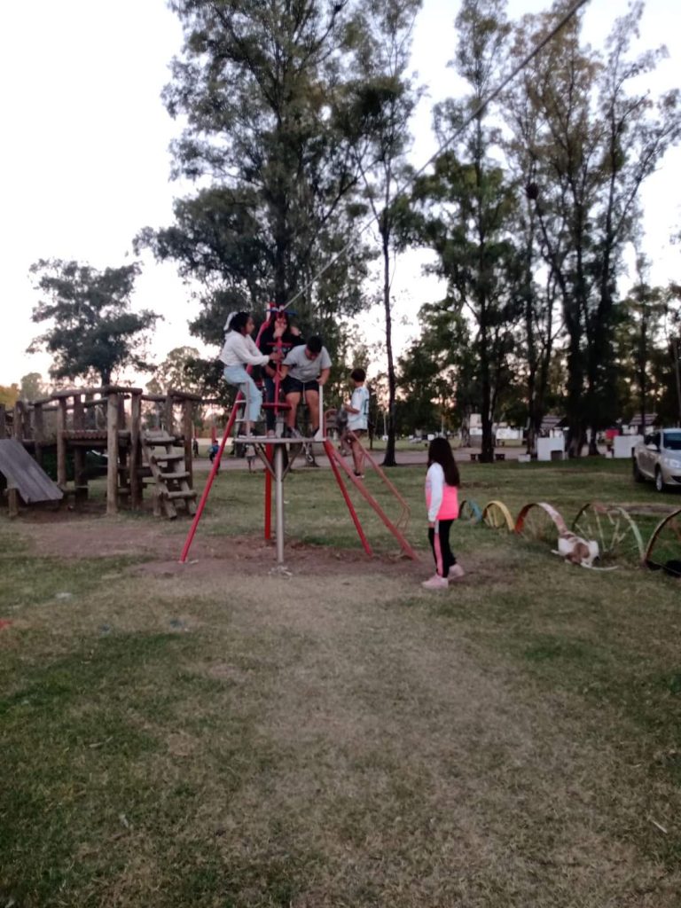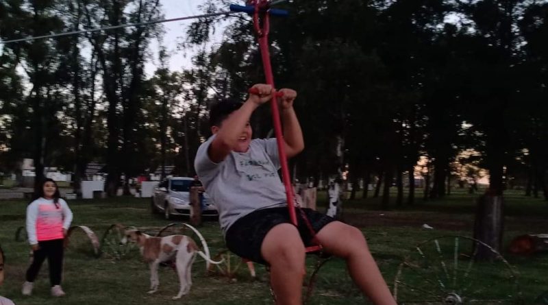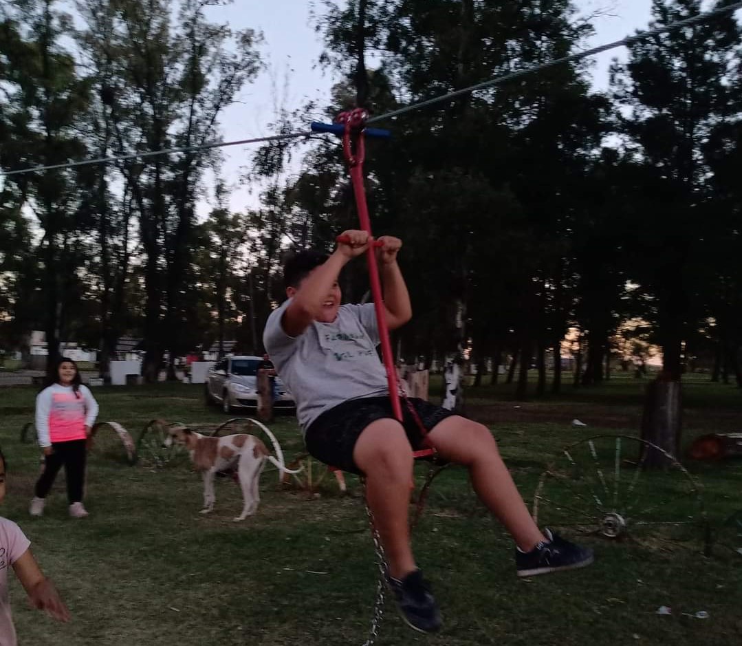 La Municipalidad de Bernardo Larroudé, a través del Área de Deporte, colocó una tirolesa en el sector de juegos infantiles del Parque Termal.