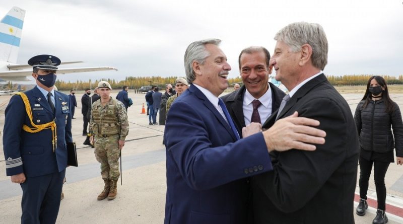 El gobernador Sergio Ziliotto y su par neuquino, Omar Gutiérrez; recibieron esta mañana en el aeropuerto “Presidente Perón” de Neuquén, al presidente de la Nación, Alberto Fernández. Desde allí se trasladaron a la planta de tratamiento de crudo (PTC) de Loma Campana, en Vaca Muerta.