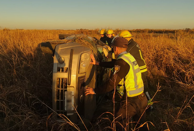La mujer única ocupante del rodado perdió el control, se salió de la cinta asfáltica hacia la mano contraria y terminó volcando en el sector norte del bajo banquina, quedando el auto a metros del alambrado del campo.