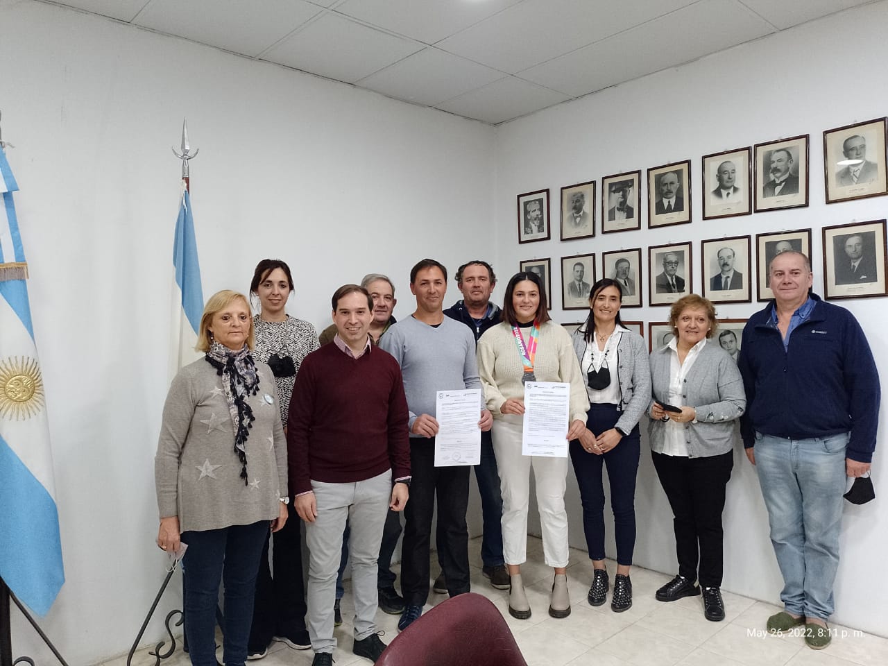 Punto 1: Visita de la Srta. Delfina y Diego Oroná para hacerles entrega de Resolución N° 005/2022 “S/ Declarando Deportista destacada de Intendente Alvear a la atleta Delfina Oroná – Subcampeona Suramericana en los Juegos ODESUR Rosario 2022”; y Resolución No 006/2022 “S/ Reconociendo la labor como entrenador de atletismo al Profesor Diego Orlando Oroná”. Se recibieron en el recinto a la Srta. Delfina Oroná y al Sr. Diego Oroná, y tras un pequeño acto se hizo entrega de las resoluciones que destacan sus logros y trabajo en la disciplina Atletismo.