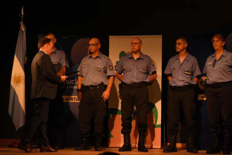 En la ceremonia se entregaron nuevas jerarquías y certificados de ascensos respectivos a los efectivos de la Unidad Regional II. En primer lugar, el señor ministro de seguridad entregó los certificados e insignias a los suboficiales mayores Fabricio Héctor Almal, Santiago Ernesto Borna Román Enrique Luna, Edgardo Ariel Quiroga y María Elena Yajes.